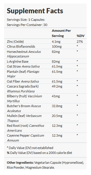 4. Bilberry (41 mg) Bilberry is necessary for managing varicose veins and hemorrhoids, and rebuilding healthy connective tissue. This component is useful in restoring tissues that are damaged and also can minimize some of the symptoms of this condition.